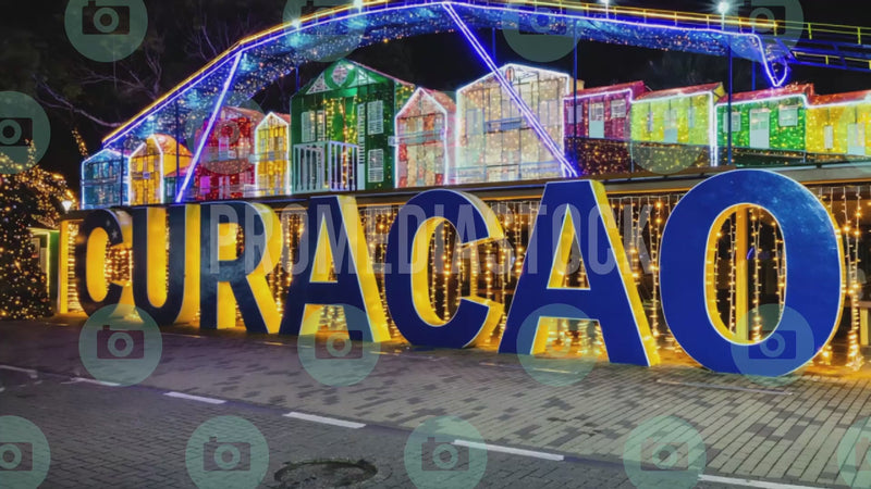 - Promediastock Reference Tags: Curaçao, Punda, Willemstad, Wilhelminaplein, City Sign, Curaçao Sign, Christmas Lights, Holiday Season, Night Scene, Decorations, Caribbean, Festive, Downtown, 1451